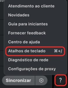 - Selecione Atalhos de Teclado para abrir uma janela pop-up exibindo todos os atalhos disponíveis.