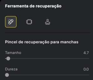 As Ferramentas de Recuperação ajudam a reparar defeitos da imagem, mesclando textura e cor das áreas ao redor, permitindo remover manchas ou imperfeições com resultados naturais.
