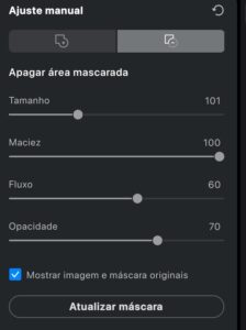 - Use o pincel para adicionar ou apagar máscaras na imagem.