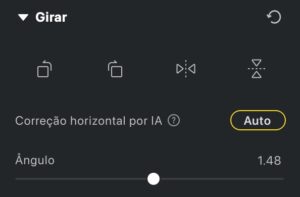 O recurso Correção por IA (acessado pelo botão Auto) utiliza inteligência artificial para endireitar automaticamente o horizonte da imagem.