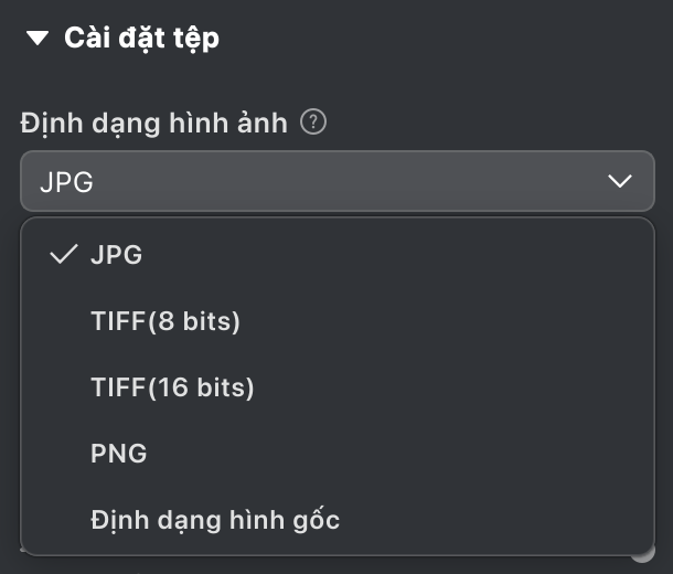 - Định dạng: Chọn định dạng ảnh xuất từ các tùy chọn sau: