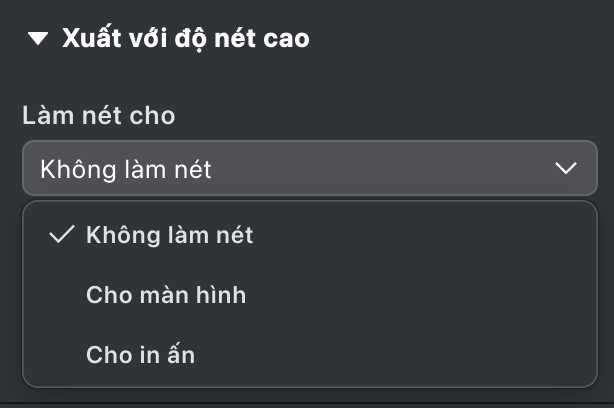 Evoto hỗ trợ thiết lập Làm nét khi xuất ảnh, tính năng này được tinh chỉnh giúp tối ưu hóa hình ảnh cho mục đích sử dụng cụ thể, ví dụ: hiển thị trên màn hình hay in ấn.