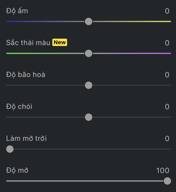- Độ ấm – Kéo thanh trượt để điều chỉnh nhiệt độ màu của hình ảnh (tông ấm hơn hoặc lạnh hơn).