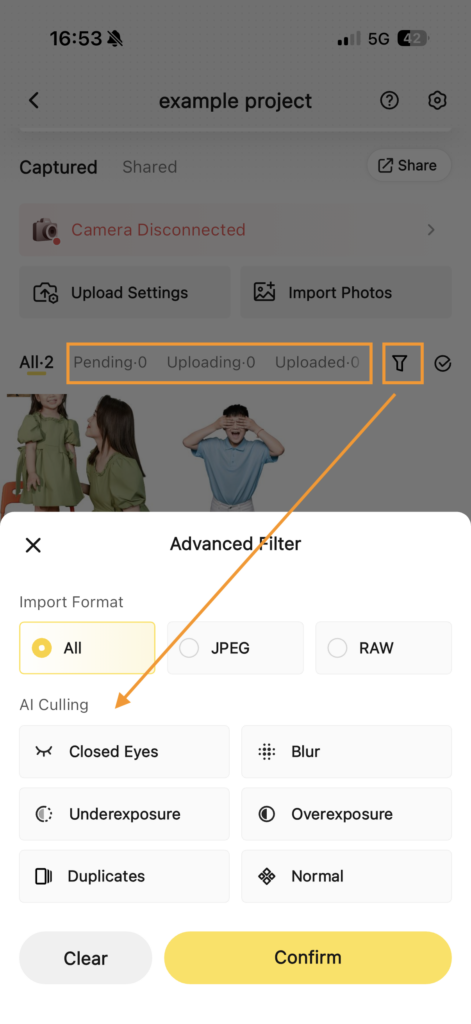 - Upload only the photos approved by AI Culling, or