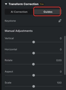 A new Guides feature has been added under Transform Correction, providing a more intuitive and controllable way to manually correct perspective distortion.