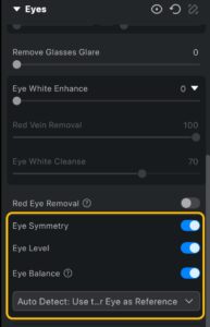 The Eye Symmetry feature optimizes the symmetry between the left and right eyes for a more balanced and natural appearance.