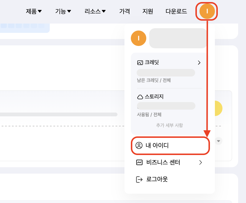 내 아이디 → 내 구매 기록 및 사용량 이동