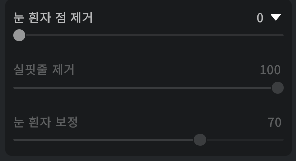 눈 보정 모듈에 쌍꺼풀 테이프 제거 슬라이더가 새롭게 추가되어 좌우를 구분하여 조정할 수 있습니다.