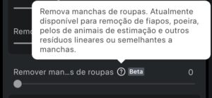 Essa ferramenta remove fiapos, poeira e outros pequenos detritos da roupa usando um único slider para controlar a intensidade.