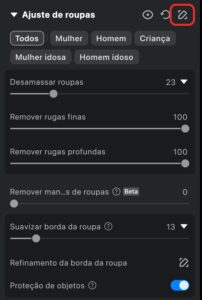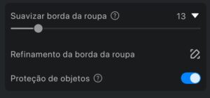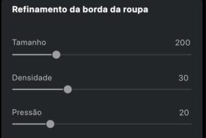 - Refinamento da Borda da Roupa: Ajuste fino de áreas específicas das bordas com a caneta de ajuste manual.