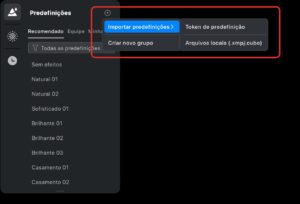 Clique no ícone ➕ (Mais) e selecione a opção Importar Predefinição.
