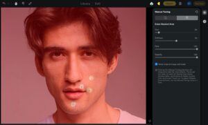 - Selecione a Caneta de Ajuste Manual (Manual Tuning Pen) na barra de ferramentas para restaurar sardas ou moles específicas com precisão.