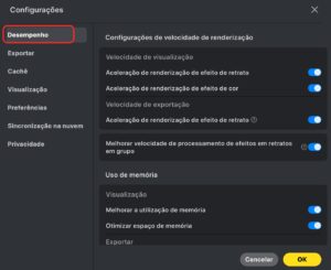 - Aceleração de Renderização de Efeito de Retrato: Utiliza mais poder de processamento do computador para acelerar a renderização de efeitos relacionados a retratos durante a visualização.