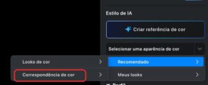 Alterne o panel de “Ajustes de cor por IA”, Correspondência de cor aparecerá nas abas Recomendado e Meus Looks.