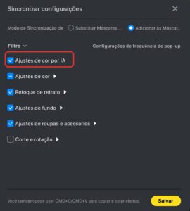 Observação: Certifique-se de que Ajustes de Cor por IA esteja ativado durante a sincronização.