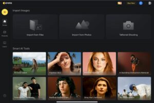 O Evoto AI organiza o retoque de imagens por meio de um fluxo de trabalho baseado em projetos. Isso facilita o gerenciamento das edições, o retorno a trabalhos anteriores ou a realização de ajustes secundários a qualquer momento. Basta tocar em um projeto existente para reabri-lo.