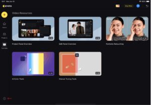 Importar Imagens: selecione imagens diretamente do armazenamento local do iPad. Um novo projeto será criado automaticamente, a predefinição correspondente ao módulo será aplicada a todas as imagens importadas e o painel lateral direito focará automaticamente no grupo de recursos relevante para edição imediata.