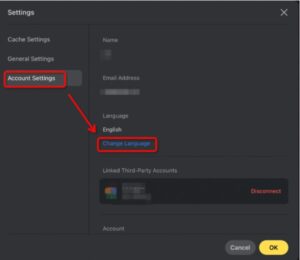 Vá em Configurações → Configurações da Conta → Alterar Idioma.
