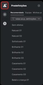 As predefinições ficam disponíveis no Widget Flutuante. Basta clicar em uma predefinição para aplicá-la à imagem que está sendo editada.