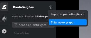 Crie Grupos de Predefinições para manter seu trabalho organizado e eficiente. Esses grupos permitem organizar diferentes tipos de predefinições por estilo, projeto ou finalidade.