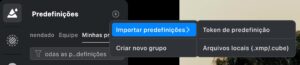 - Arquivos .XMP ou .CUBE – Predefinição de gradação de cor padrão da indústria