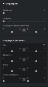 - Brilho – Ajusta a luminosidade geral da maquiagem dos olhos.