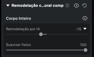 - Funciona somente quando a Remodelação por IA está ativa com valor negativo (de –1 a –100).