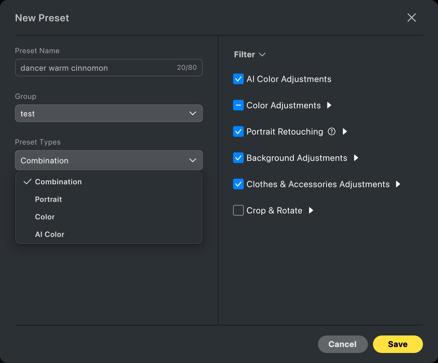 Name your presets clearly (e.g., “Soft Portrait Retouch” or “Studio Clean Background”) so you can find them easily later.