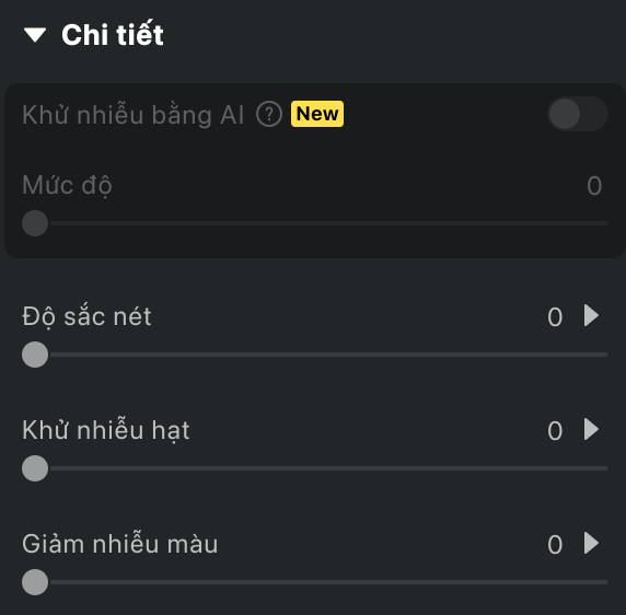 Nhóm tính năng Chi tiết cung cấp các công cụ để làm nét ảnh và giảm nhiễu không mong muốn, mang lại kết quả sắc nét và chuyên nghiệp hơn.