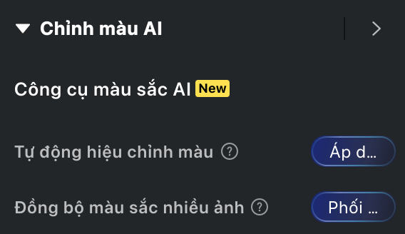 - Áp dụng các chỉnh sửa phong cách AI (như Phong cách màu AI hoặc AI Phối màu) trước. Sau đó sử dụng Công cụ màu AI (bao gồm Đồng bộ màu nhiều ảnh và Tự động hiệu chỉnh màu).