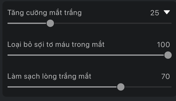 - Lòng trắng mắt – Điều chỉnh độ sáng của lòng trắng mắt (Phạm vi điều chỉnh từ 0-100, mặc định là 80).