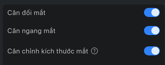 - Căn chỉnh kích thước mắt: Khi bật, hệ thống sẽ tự động căn chỉnh kích thước của hai mắt cho đối xứng.