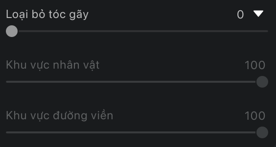 • Khi thanh trượt “Làm mượt tóc” được bật, hiệu ứng “Loại bỏ tóc xơ rối” sẽ tự động được áp dụng ở mức 100.